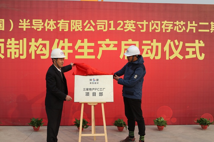 12月28日,在即將踏入充滿希望的2018年之際,陜建新型建材公司在三星(中國)半導體有限公司12英寸閃存芯片二期項目生產基地舉行預制構件生產啟動儀式。陜建投資集團副總經理、陜建新型建材公司董事長劉新龍致辭并表示祝賀;公司副總經理王永貴主持、副總經理王輝為三星物產PC工廠項目部揭牌,公司中層以上管理人員及現(xiàn)場生產工人60余人共同見證這個難忘的時刻。