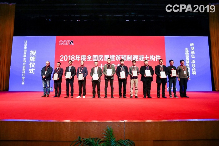 2019年12月6日至8日,2019中國混凝土與水泥制品行業(yè)大會在南京舉辦,大會主題為“預制構件生產質量與成本控制”。 12月7日,在2019中國混凝土與水泥制品行業(yè)大會舉行的十強企業(yè)授牌儀式上,我司被授予2018年度全國房屋建筑預制混凝土構件十強企業(yè)。