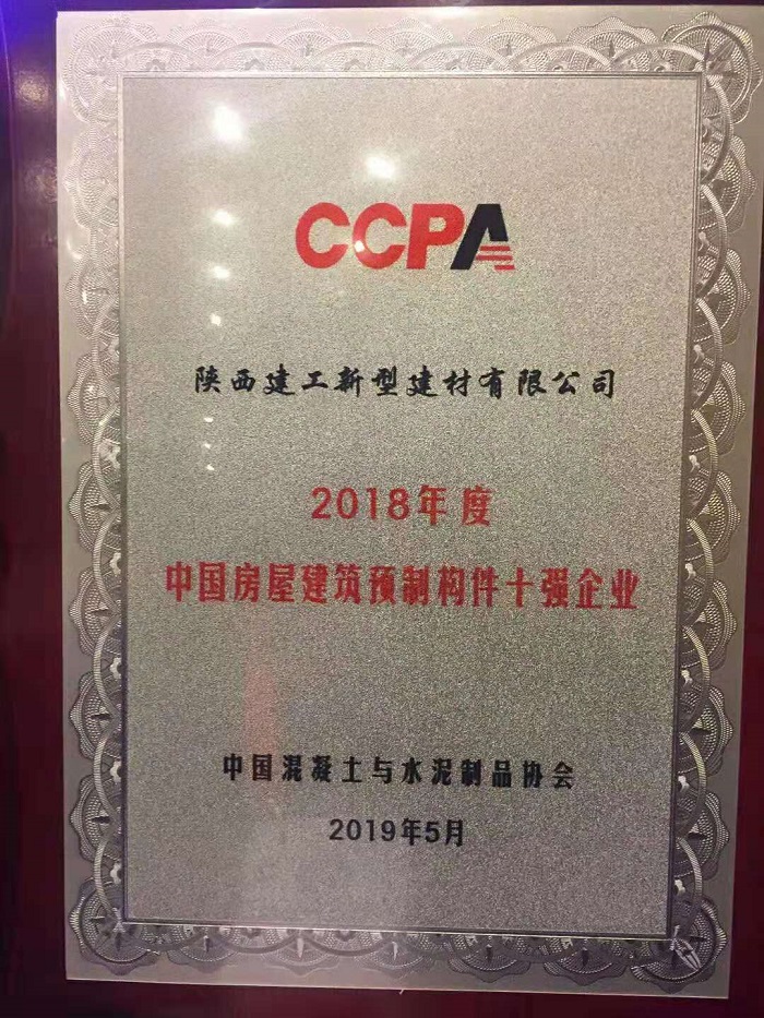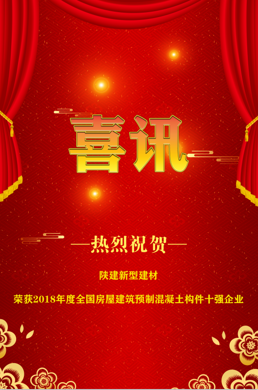 | 喜報∣陜建新型建材榮獲2018年度全國房屋建筑預制混凝土構件十強企業(yè) |