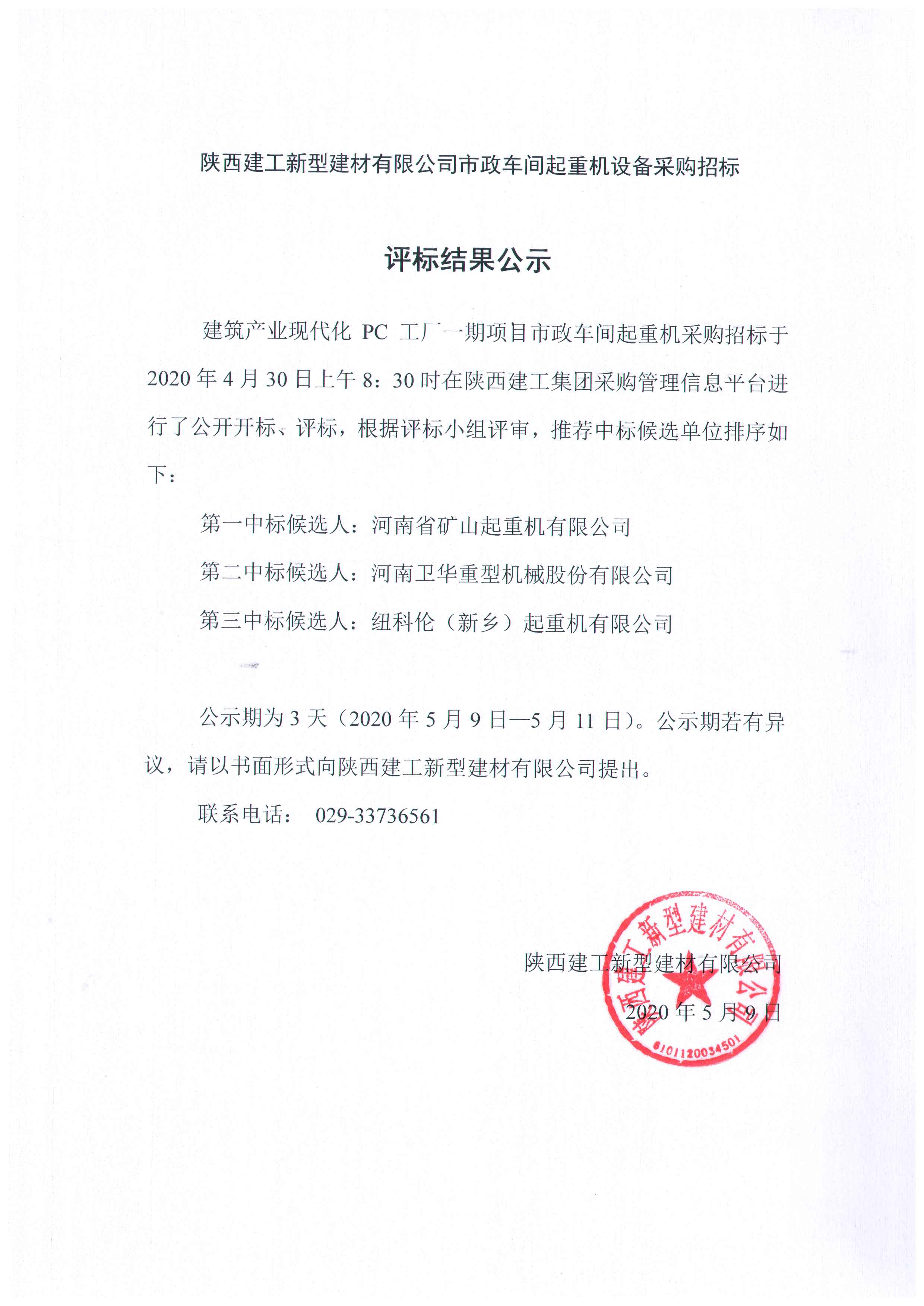 | 市政車間起重機(jī)設(shè)備采購招標(biāo)評(píng)標(biāo)結(jié)果公示 |