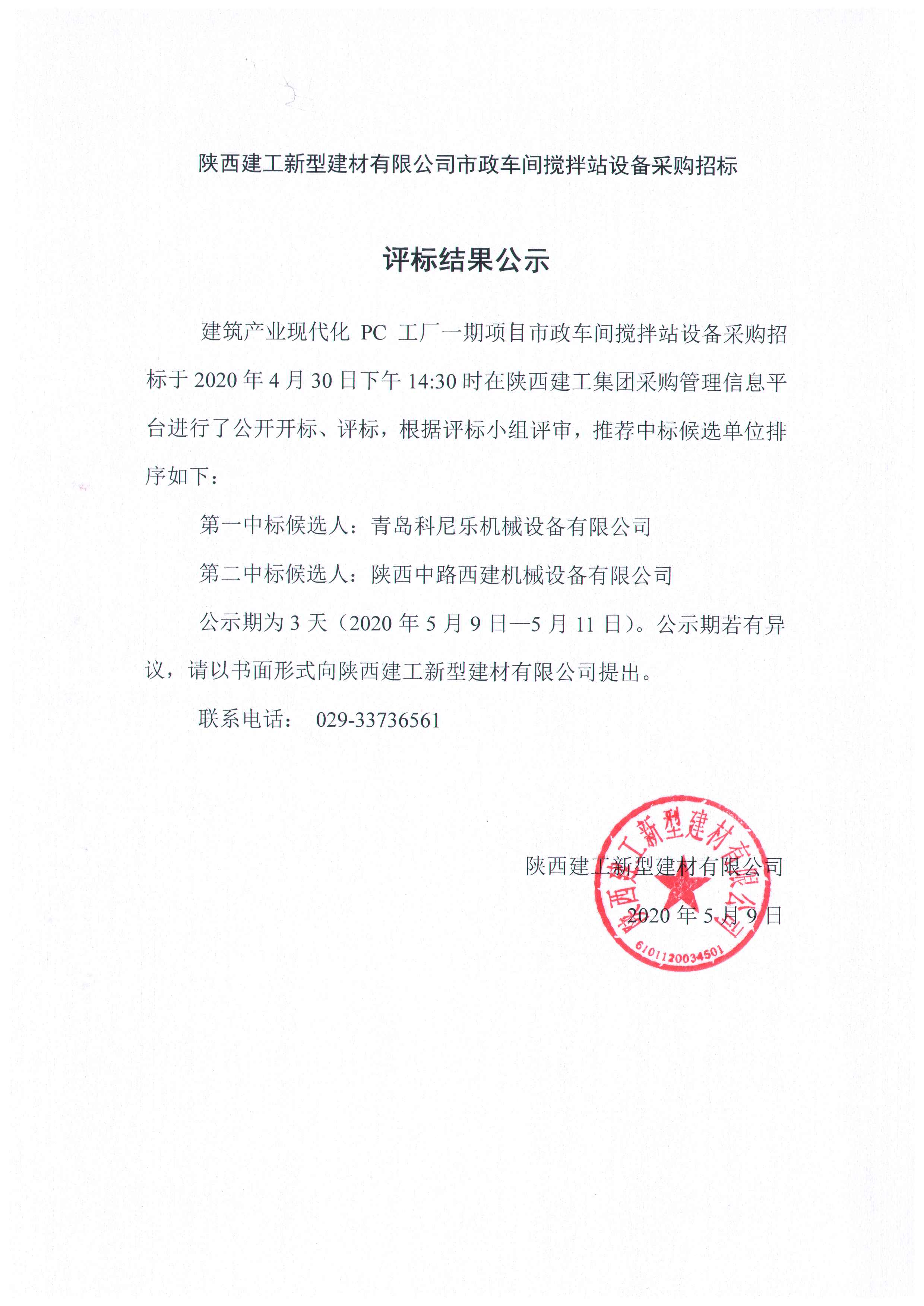 | 市政車(chē)間攪拌站設(shè)備采購(gòu)招標(biāo)評(píng)標(biāo)結(jié)果公示 |