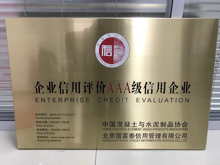 近日,我司在召開的中國混凝土與水泥制品行業(yè)大會上榮獲2020年度混凝土與水泥制品行業(yè)信用評價AAA級企業(yè)。