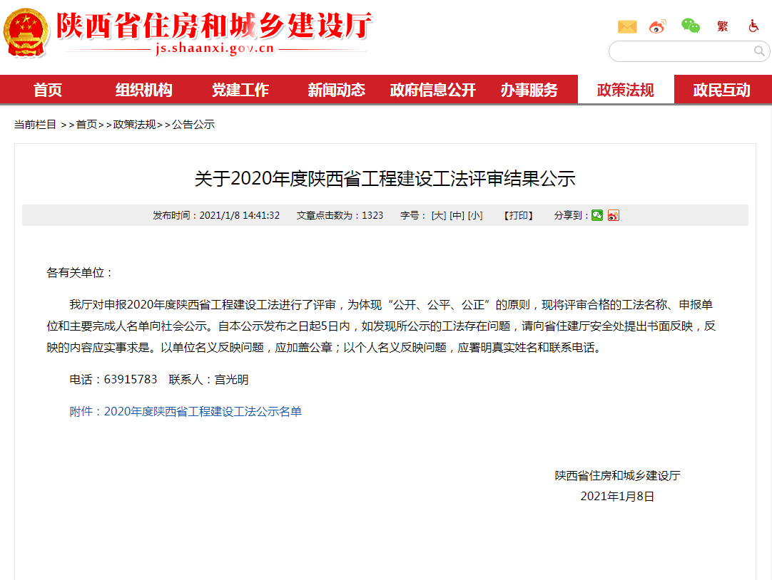 近日,陜西省住房和城鄉(xiāng)建設(shè)廳公示了2020年度陜西省工程建設(shè)工法評(píng)選結(jié)果,我司申報(bào)的《預(yù)制拼裝綜合管廊施工工法》榜上有名。