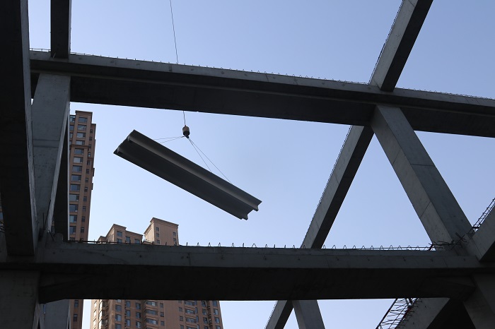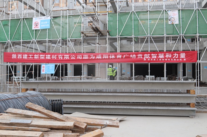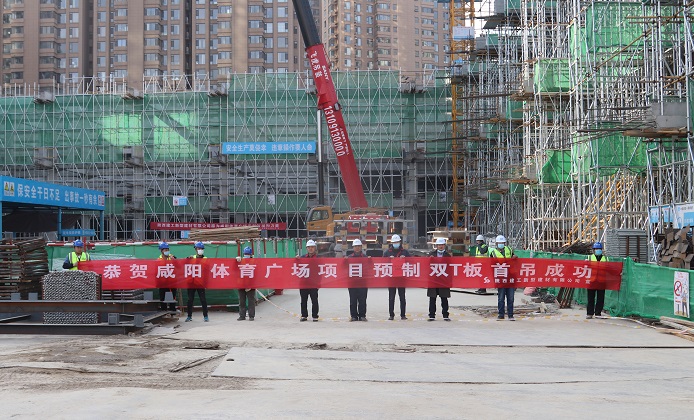 | 陜建新型建材承接的咸陽(yáng)體育廣場(chǎng)項(xiàng)目預(yù)制雙T板首吊成功 |