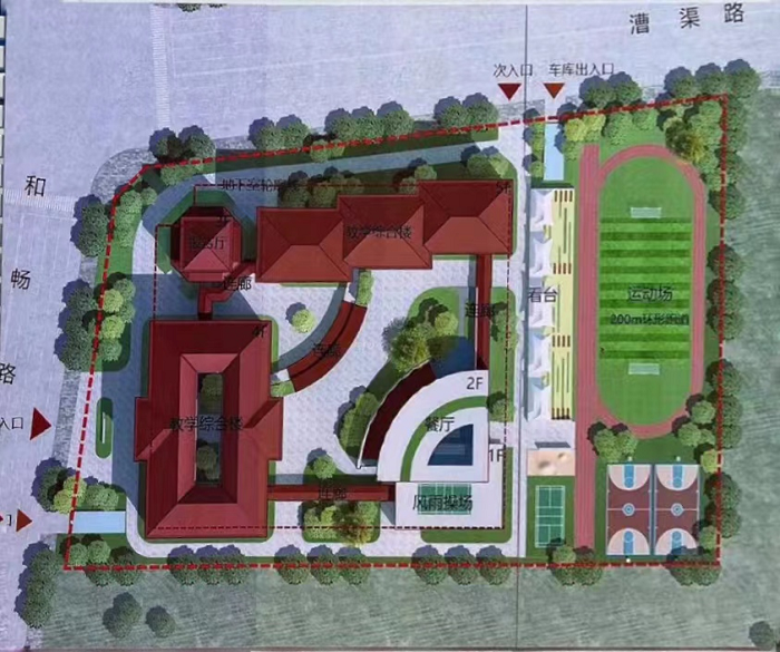 港務(wù)區(qū)陸港第六小學(xué)鳥瞰效果圖