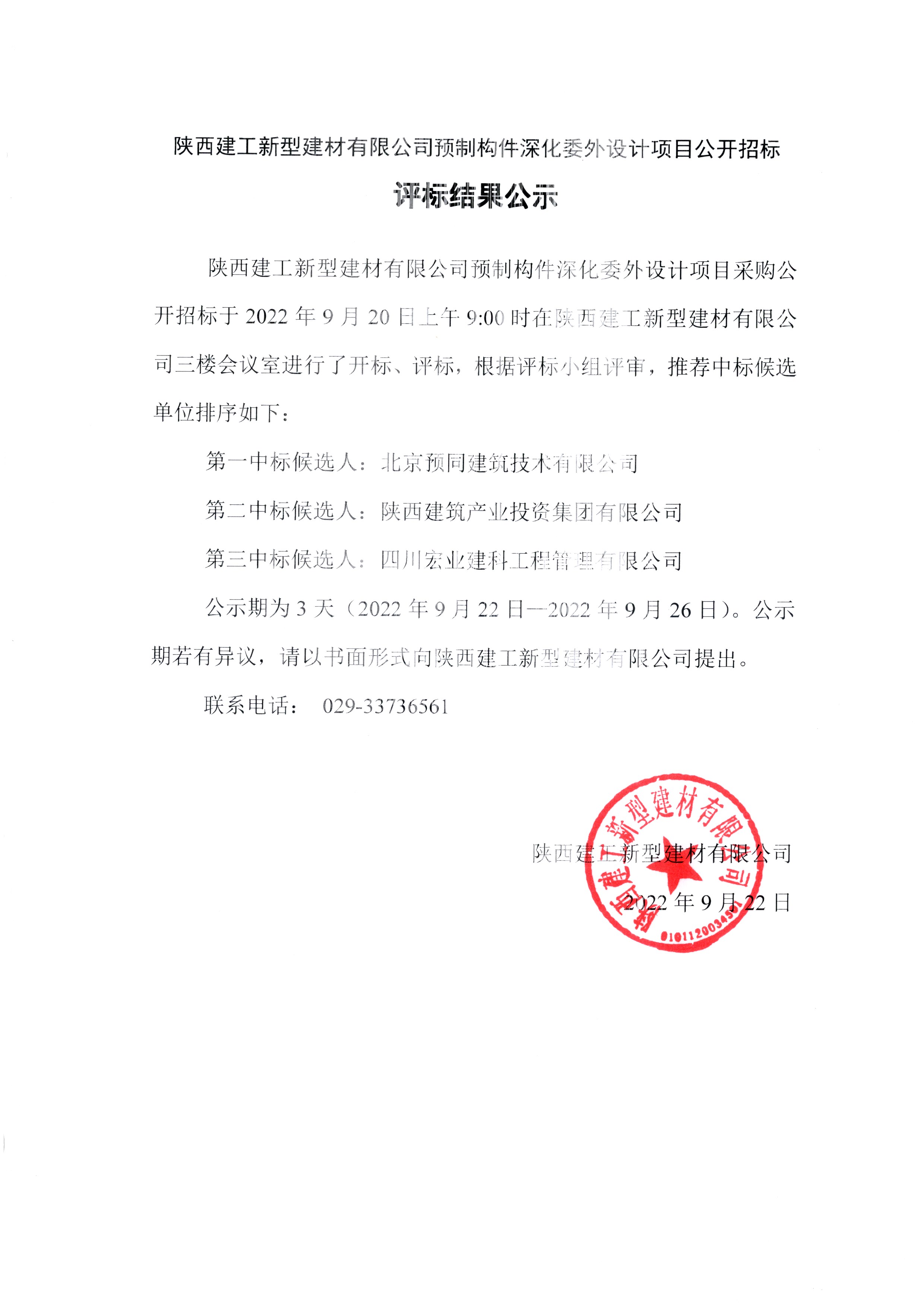 | 陜西建工新型建材有限公司預制構件深化委外設計項目評標結果公示 |