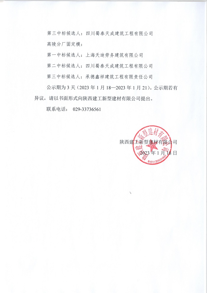 | 陜西建工新型建材有限公司PC構(gòu)件勞務(wù)招標 評標結(jié)果公示 |