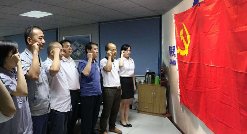 賽后,為慶祝“七一”建黨節(jié),公司全體黨員面向黨旗莊嚴(yán)宣誓,重溫入黨誓詞。 |