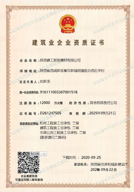 近日,陜建新型建材傳來喜訊,公司成功取得建筑工程、機電工程、市政公用工程施工總承包、鋼結(jié)構(gòu)工程專業(yè)承包二級資質(zhì)證書,該資質(zhì)的取得,將有助于進一步擴大公司的業(yè)務(wù)范圍和經(jīng)營規(guī)模,提升公司的競爭力和更廣闊的發(fā)展空間。