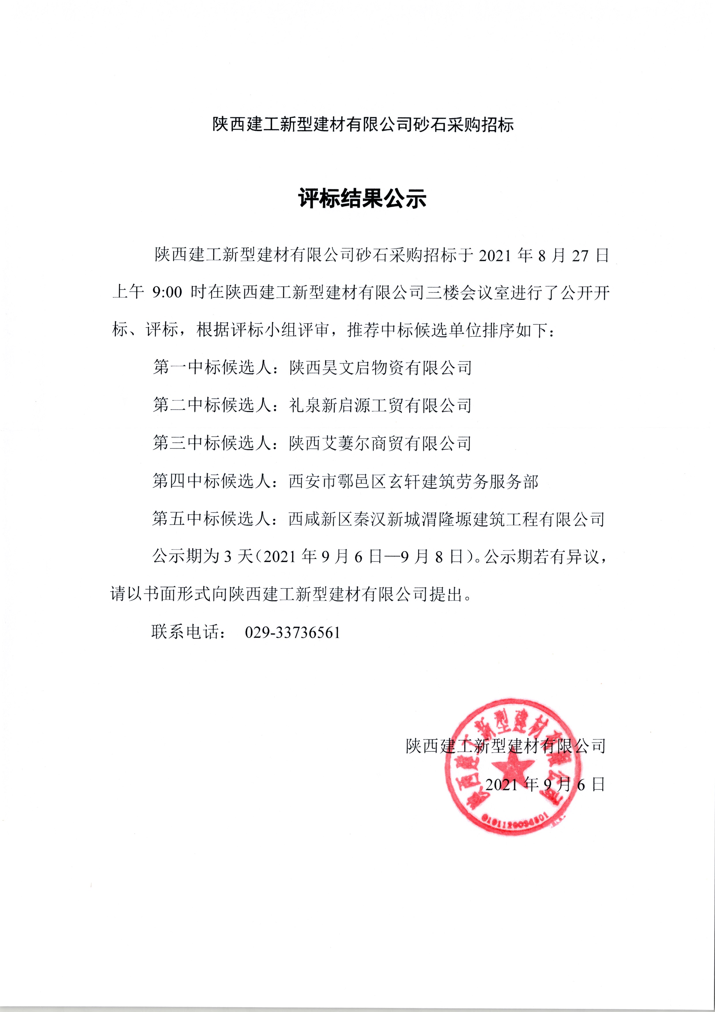 | 陜西建工新型建材有限公司砂石采購招標評標結(jié)果公示 |